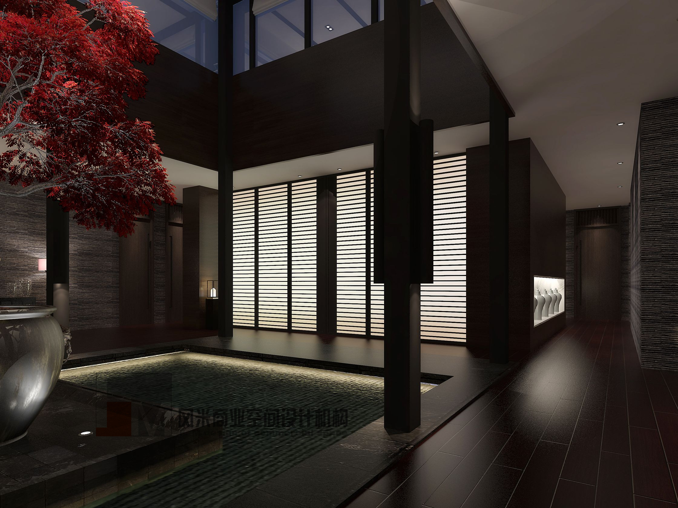 該會所位于江南區(qū),初步洽談了解會所主人對現(xiàn)代中式風(fēng)格頗為偏愛,其名為紅巢,配上楓樹盆栽的點綴讓整個會所在人們心中留下秋天的韻味。