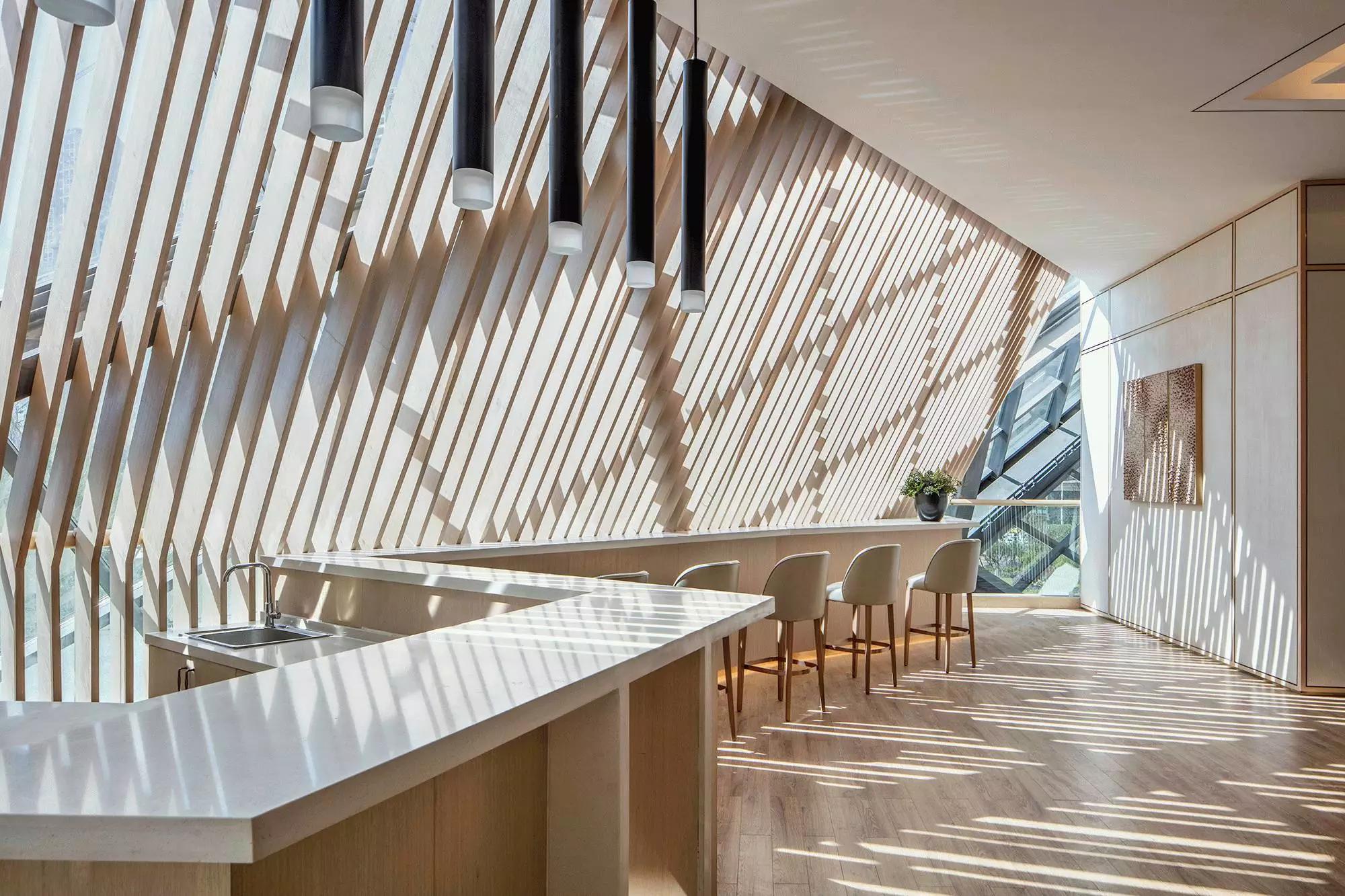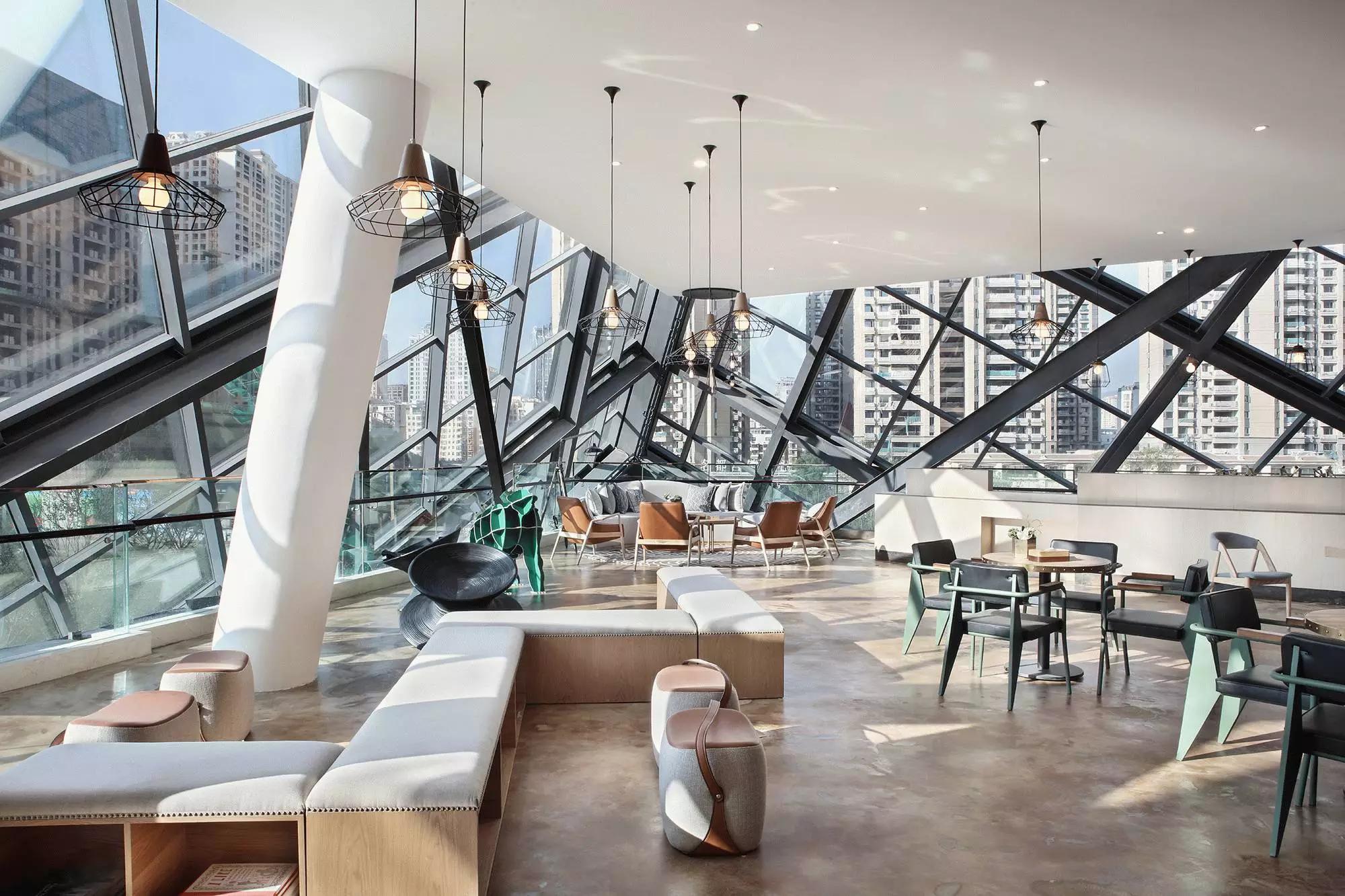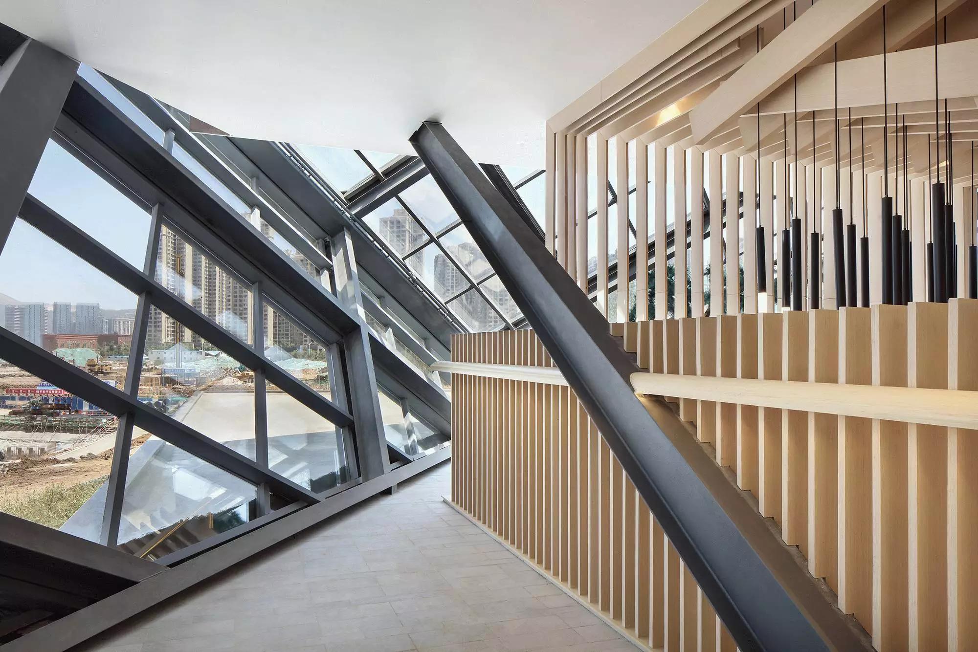 項目原屬昆明聯(lián)想科技城,后由融創(chuàng)地產接盤,他們希望將該建筑打造成為集辦公、商業(yè)、展示等多元化為一體的空間,并使其成為昆明新的城市地標建筑。接手本案的主創(chuàng)設計師是默存設計的季青濤,作為具有建筑師背景的主創(chuàng)設計師,從建筑空間的思維從事空間設計便成為一種必然。在原有“盒子”空間的內部,設計師以木結構對空間進行了重組和分割。