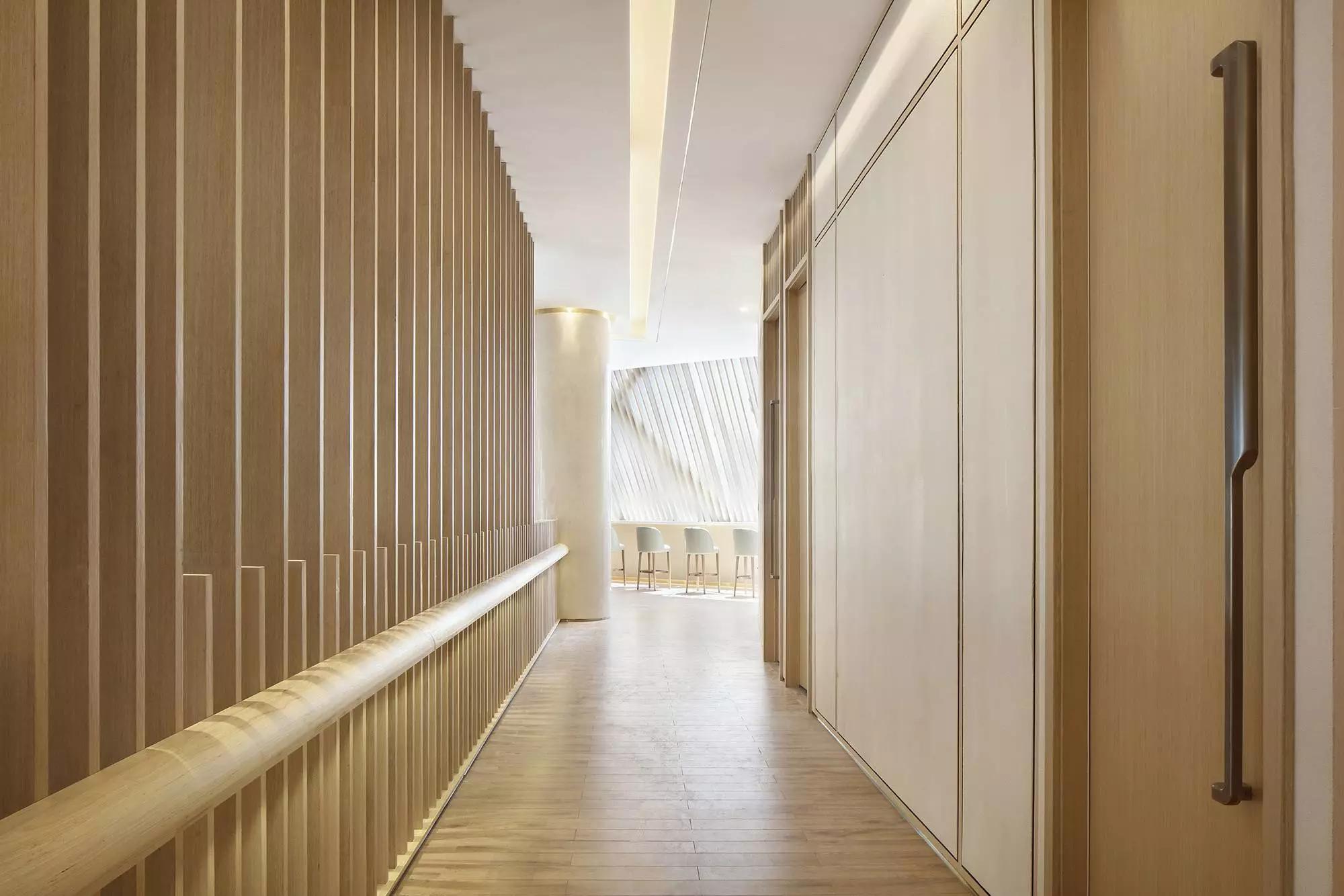 這種處理方式,仿佛原有建筑內又套了一個建筑,觀者從外入內將面臨到巨大的空間反差。光影從結構衍生出來,也是結構的一部分。采用最簡單的平行結構,光影作用下卻出現了復雜的韻律感受,并根據光線移動在一天內發(fā)生轉變。